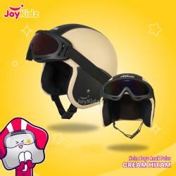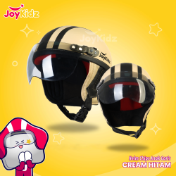 Helm Anak Bogo Polos Cream Hitam Usia 2-7 Tahun